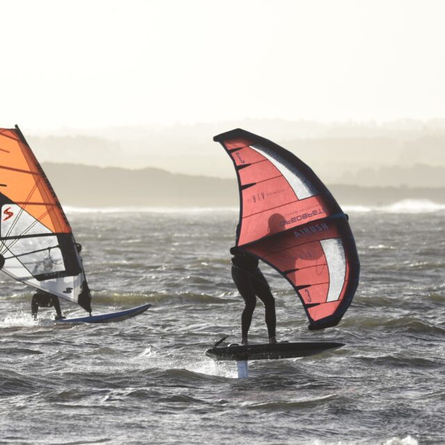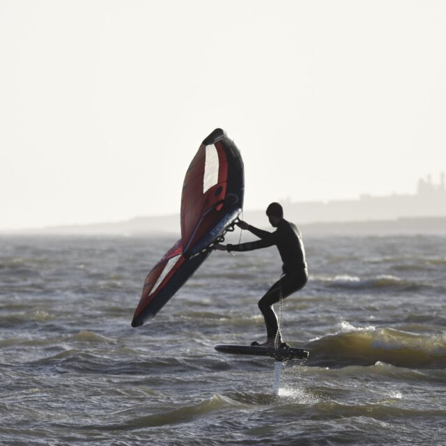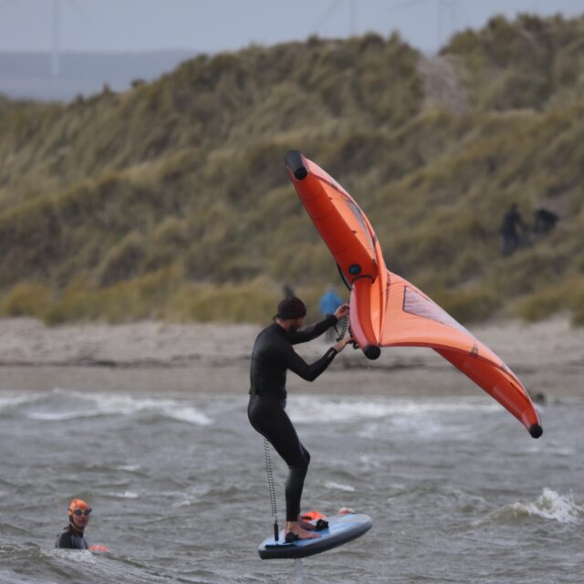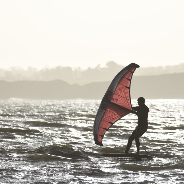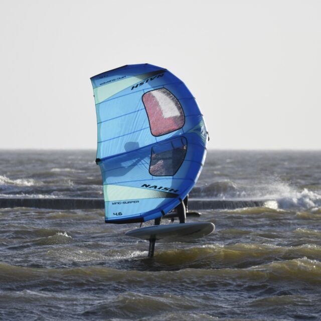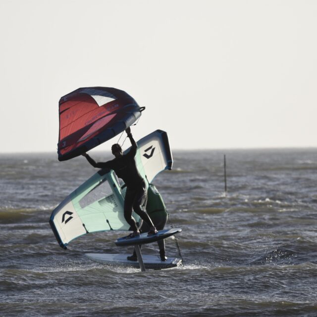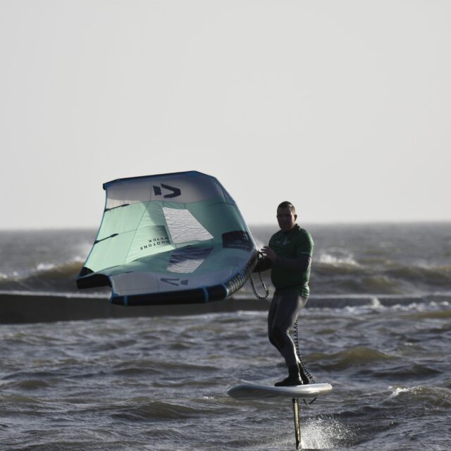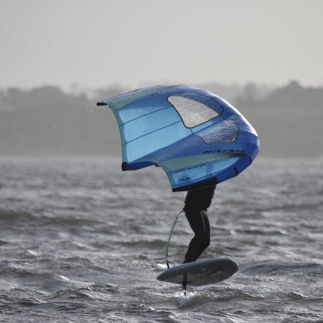 Wingfoil – Now you’re ready for the Foils. At this point we will introduce you to connecting a foil to the board, show you how to get started on the foil and keep your speed. Riding backwards and forwards on the foil, turning, pumping and getting competent with the wing and foil.