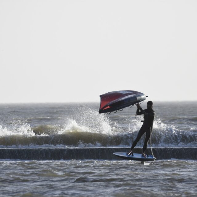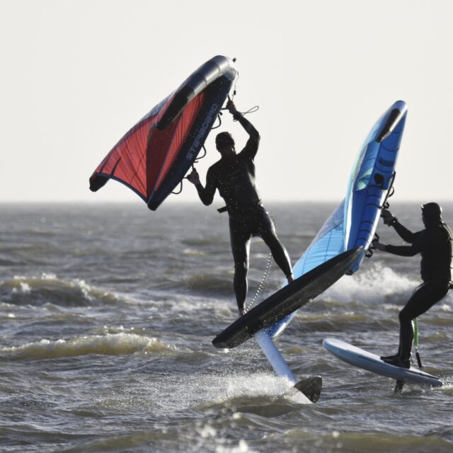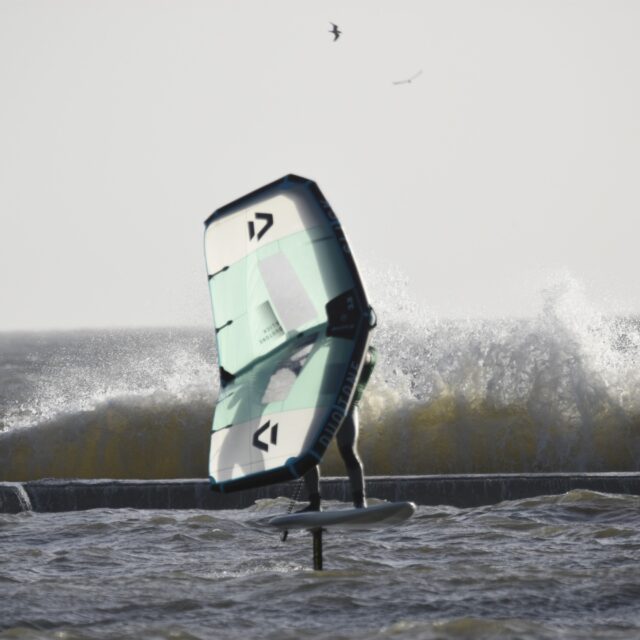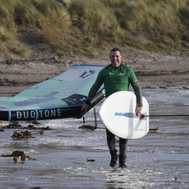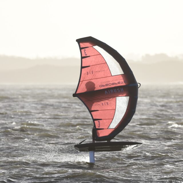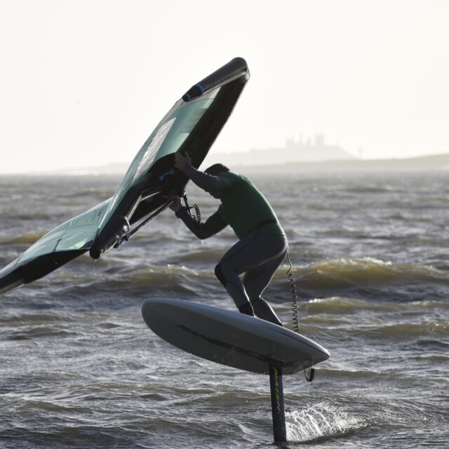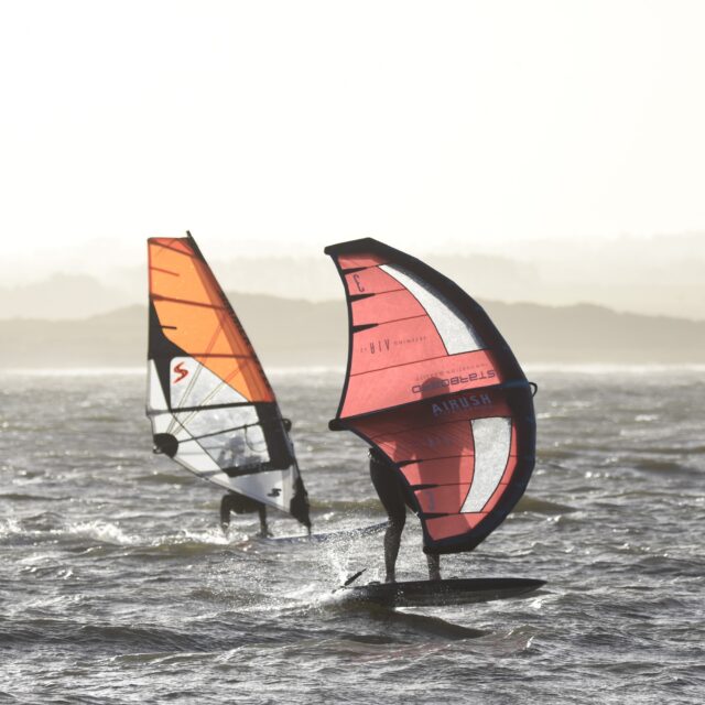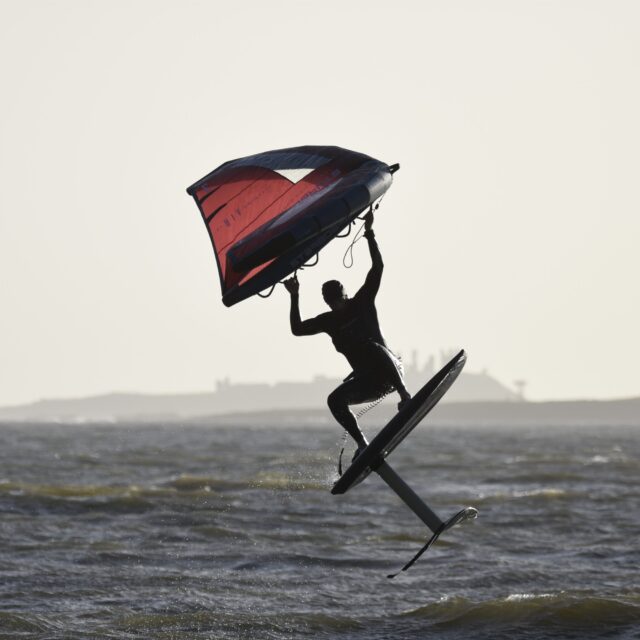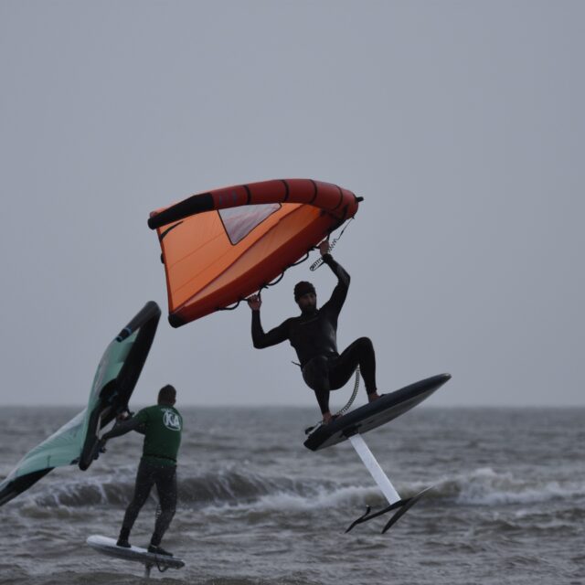 Wingfoil – Now you’re ready for the Foils. At this point we will introduce you to connecting a foil to the board, show you how to get started on the foil and keep your speed. Riding backwards and forwards on the foil, turning, pumping and getting competent with the wing and foil.